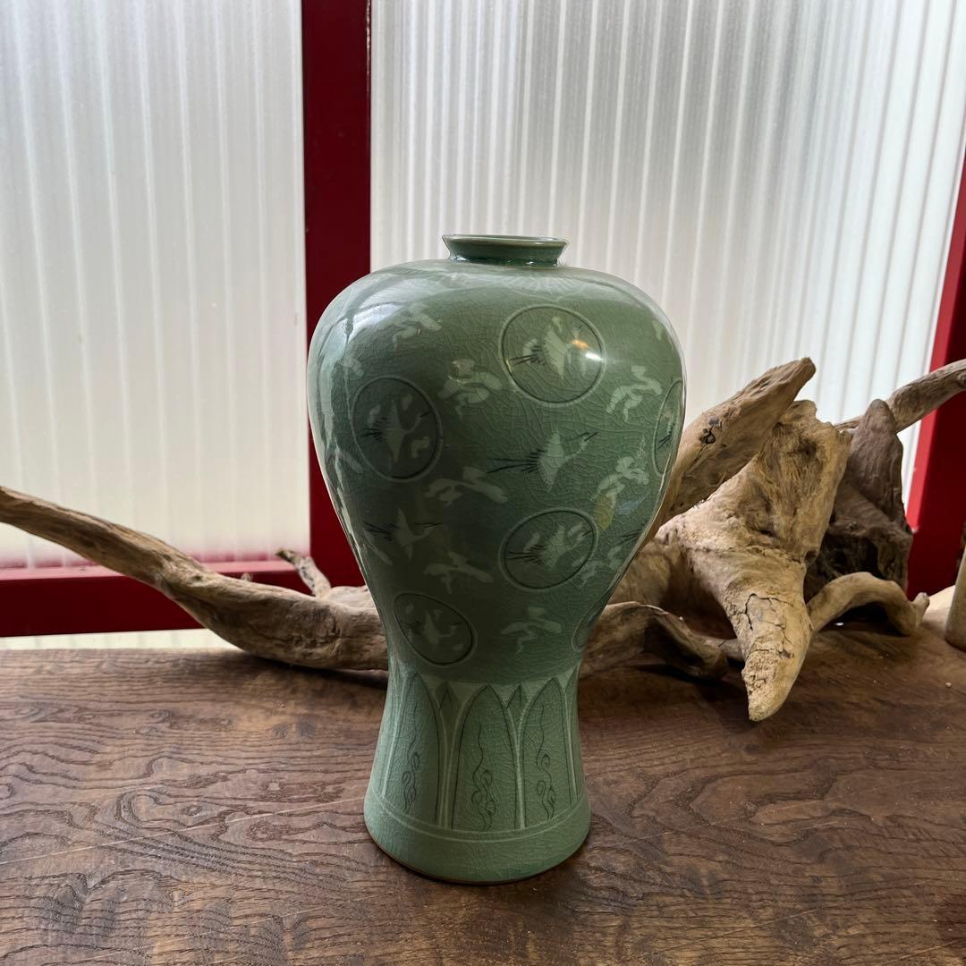 家族が花瓶として使っていました。大きめ花瓶壺。コンランショップ Henry Dean ヘンリーディーンフラワーベース 青緑3点。2リットルのペットボトルは大きさ比較のためつきません。昭和レトロ 花瓶 清水焼お店の情報